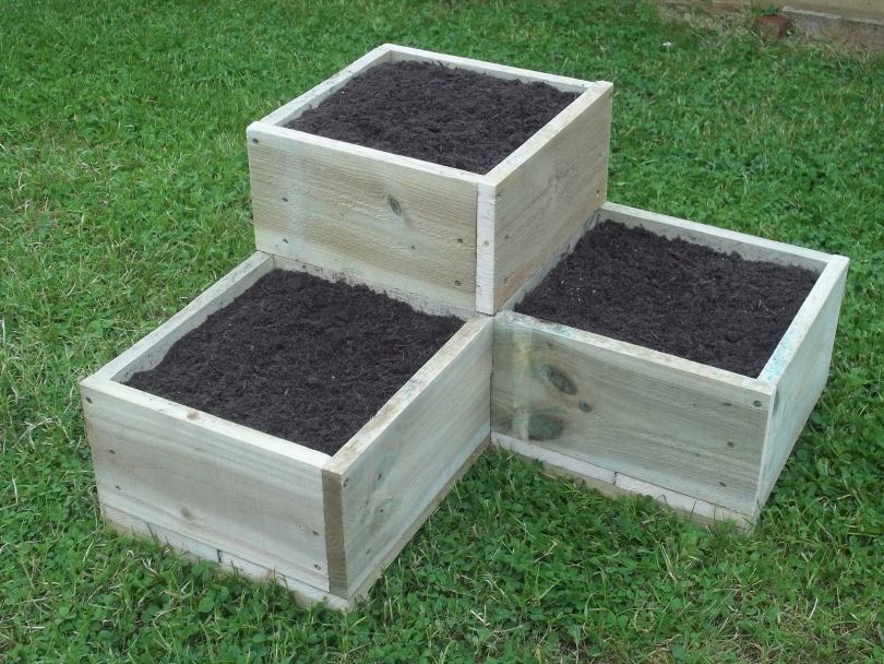 - осуществляется укладка еще двух ящиков поверх первого яруса, половина крайних емкостей должна оставаться свободной для посадки растений или семян цветов;