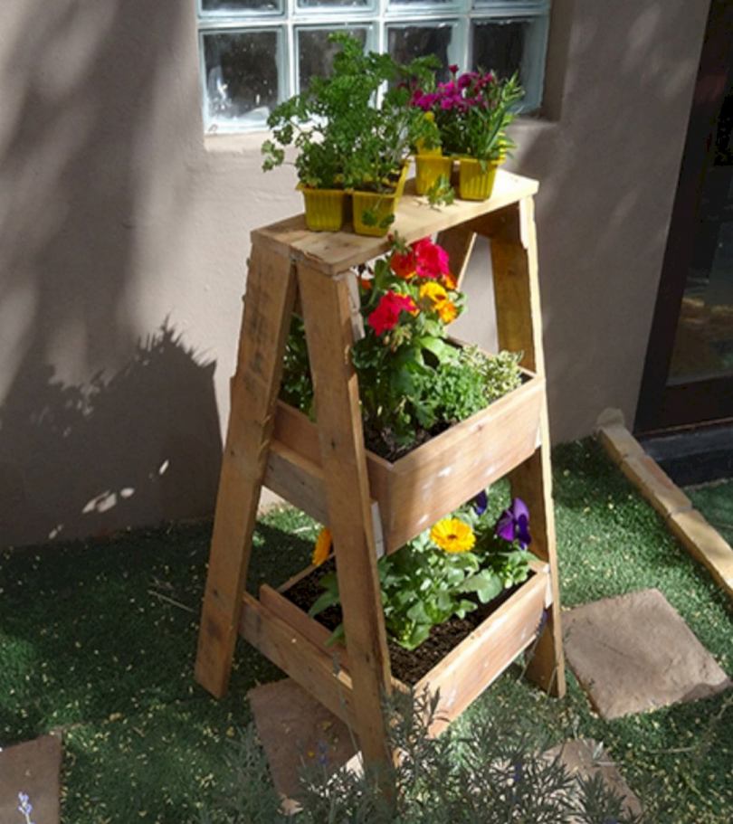 Необычная, многоярусная клумба своими руками станет украшением участка и для ее изготовления можно использовать обычные деревянные ящики.