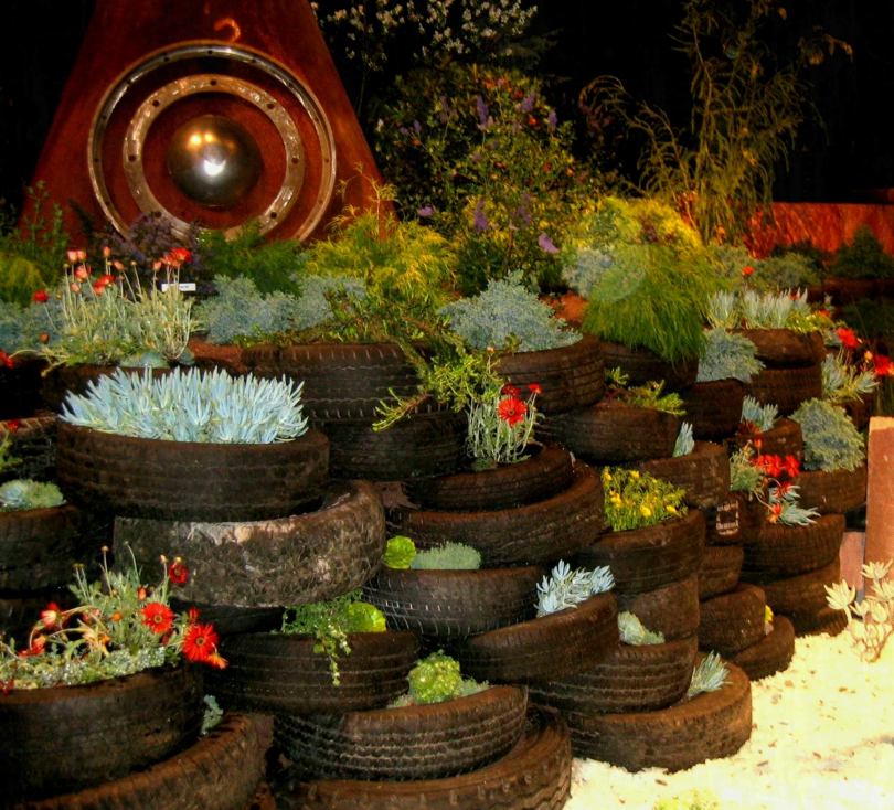 Часто бывает, что контейнер или другая большая емкость уже не используется, тогда для таких предметов всегда найдется место в цветнике. Пластиковая клумба станет неотъемлемой частью ландшафтного дизайна, а деревянная бочка с цветами удачно вписывается в стиль кантри.
