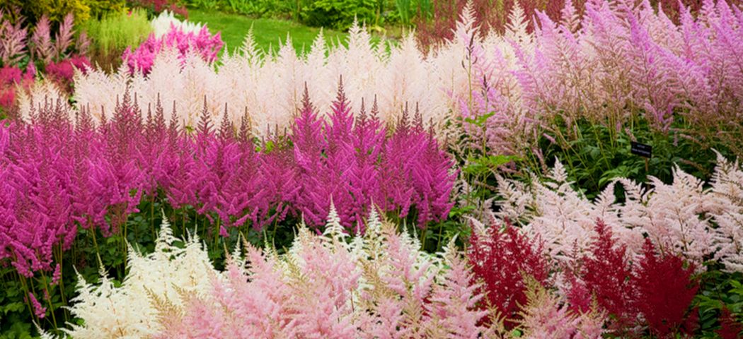 Астильба требует плодородной почвы. Высокорослое растение до полутора метров в высоту. Эффектные метельчатые соцветия можно оставлять на кусте до осени. Эти многолетники цветут до 10 недель. Перисторассеченные листья весной часто приобретают медный оттенок. Перед посадкой астильбы в почву вносят органику, в засуху поливают.