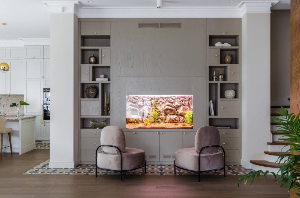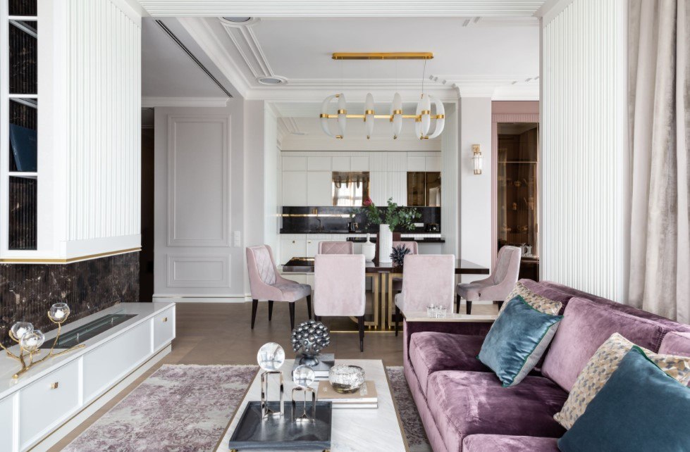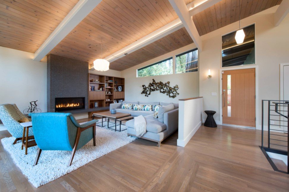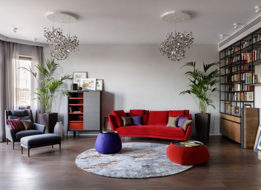 Дизайн гостиной в этом направление представляет собой комбинирование деталей, относящихся к консерватизму и модерну. Иными словами – эффектное убранство стен можно смело дополнить лаконичной мебелью или, наоборот, освежить спокойную цветовую гамму гостиной при помощи утончённых и роскошных аксессуаров.