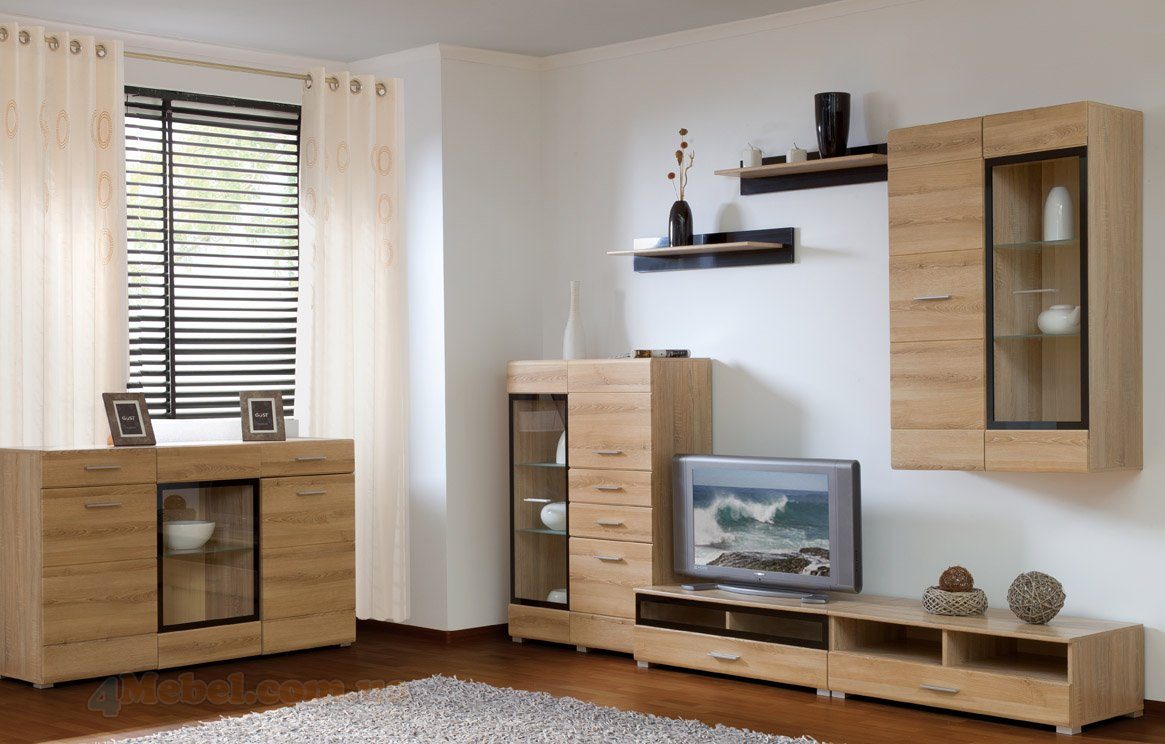 Выбор цвета модульного комплекта очень важен, так как он должен гармонично вписываться в обстановку, сочетаясь с оттенками интерьера. Чаще всего производители предлагают широкую гамму оттенков натурального дерева, которые актуальны в любом оформлении.