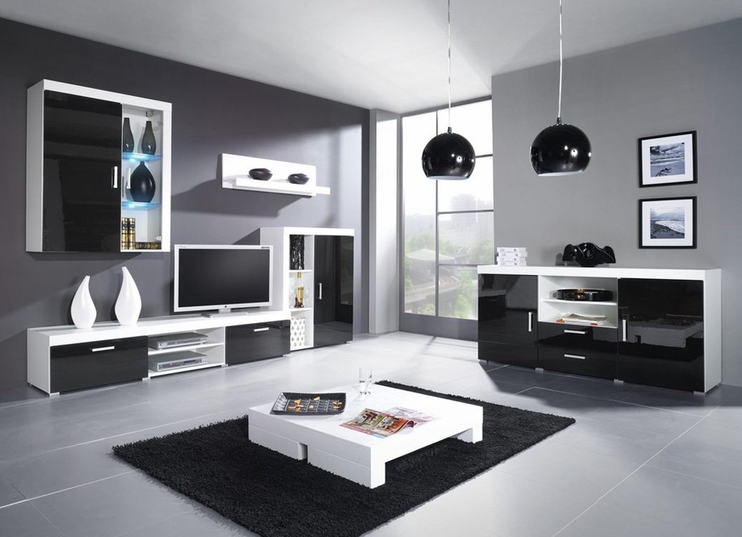 В современных вариантах интерьеров нередко можно увидеть гостиные черного цвета. Такая мебель смотрится оригинально и красиво в сочетании с со светлыми деталями. Обычно добавлением к черному идут белый или оттенки бежевого.