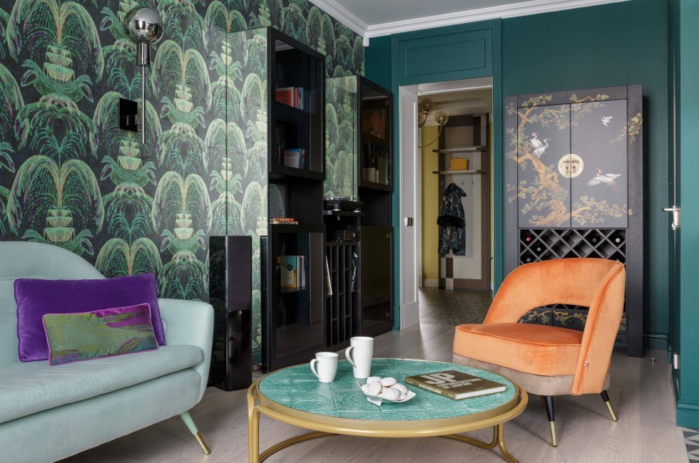 Эффектное сочетание зеленого и черного в сочетании с акцентами красного или золотого позволит создать стильный и очень динамичный интерьер.