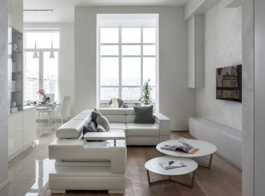 На протяжении многих лет остается популярным белый цвет, делающий обстановку более светлой и оживленной. Белая гостиная способна также зрительно увеличивать помещение.