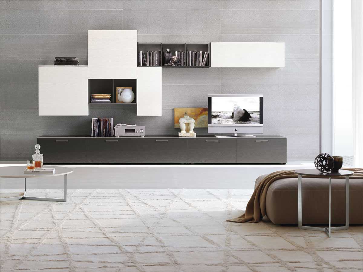 Модульные системы, используемые для оформления гостиной, состоят из множества различных деталей. Это единственное, что роднит их с корпусной мебелью. Поскольку модули выходят целой коллекцией, можно выбрать необходимое количество компонентов гарнитура и быть уверенным, что все они будут гармонировать друг с другом. С классической корпусной стенкой так сделать не получится — количество элементов у нее строго фиксировано. Стандартная комплектация может включать в себя:
