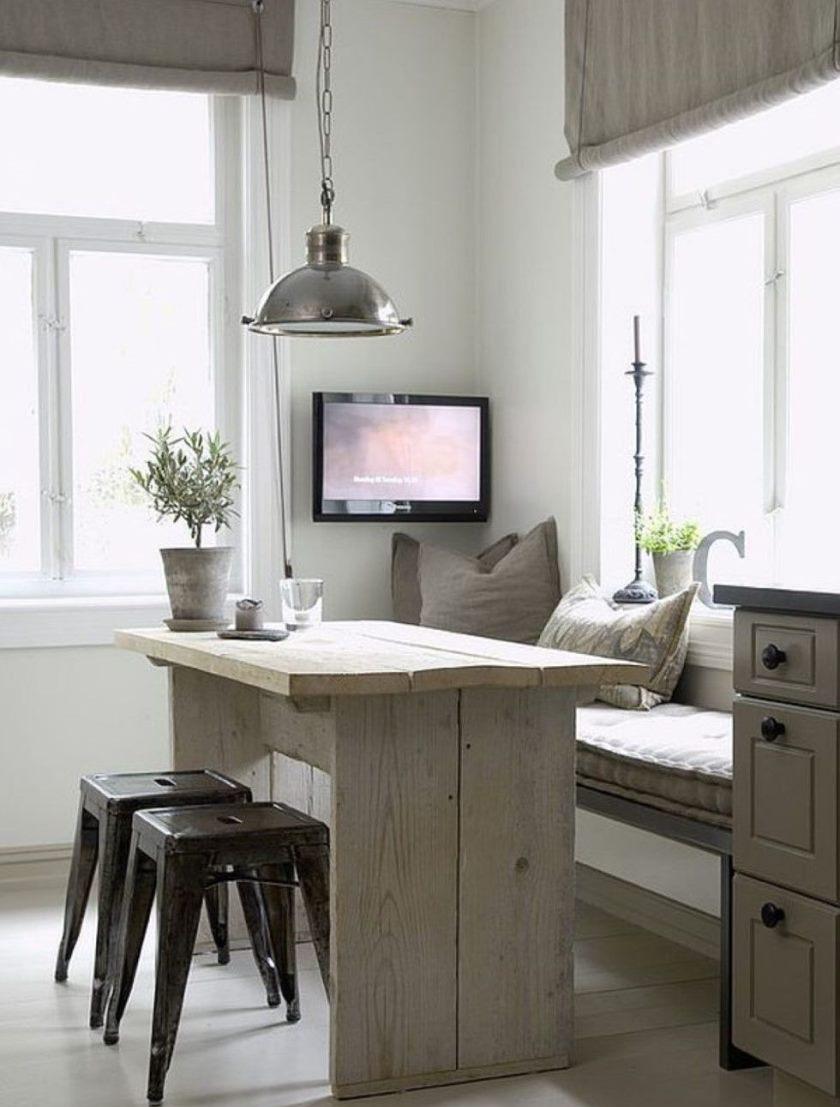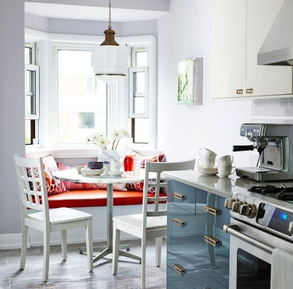 Комбинировать угловой диванчик очень удобно с креслом и столиком для чаепития.