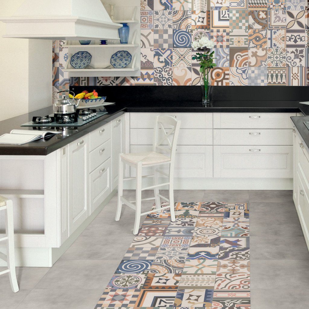 - В самых активно загрязняемых зонах можно выложить менее чувствительный к регулярному мытью материал, а остальное пространство заполнить мозаикой.