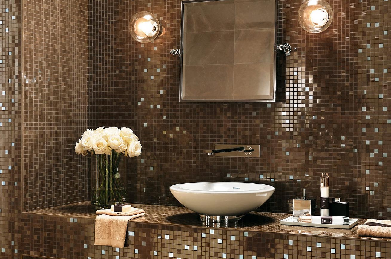 Зеркальные полотна всегда придавали интерьеру торжественности и расширяли пространство. Мозаичная плитка выглядит эффектно, а главное, дает широкие возможности для творчества: ее можно комбинировать с другими материалами, сочетать разные размеры и формы, создавать фигурные композиции.