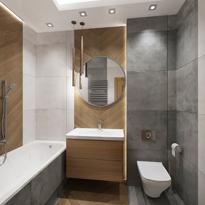 Так же, как в серо-деревянной ванной комнате. Серый — это цвет, который отлично подходит для роли основы, на фоне которой другие цвета выделяются и выходят на первый план. Поэтому, если вы хотите создать ванную комнату с элементами дерева и хотите максимально выделить их, поставьте серый фон на заднем плане.