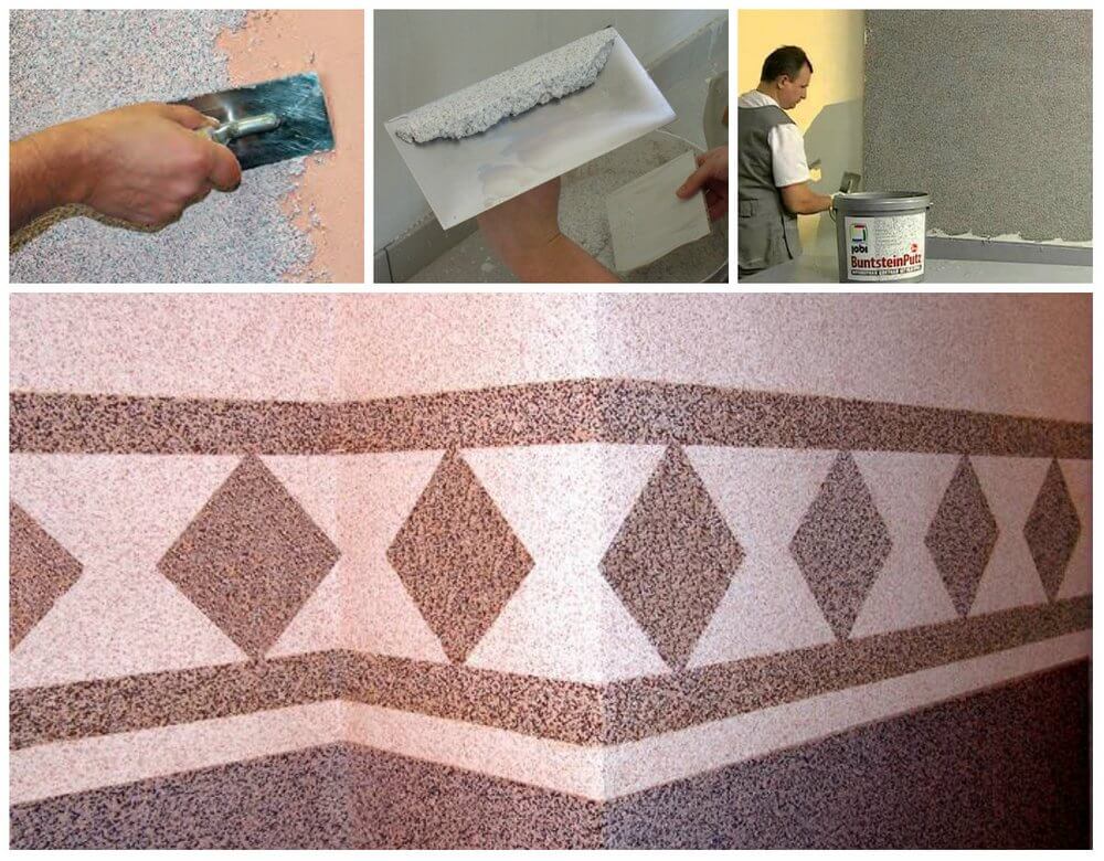 Сделать штукатурку вполне по силам самостоятельно. Для этого нужны связующие компоненты, основные наполнители в виде крошки из мрамора и гранита и пигменты.