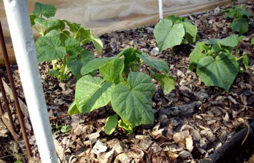 В случае, когда пересадка огурцов происходит в теплицу из поликарбоната, в которой нет отопления, ускорить их рост можно «теплыми» грядками.
