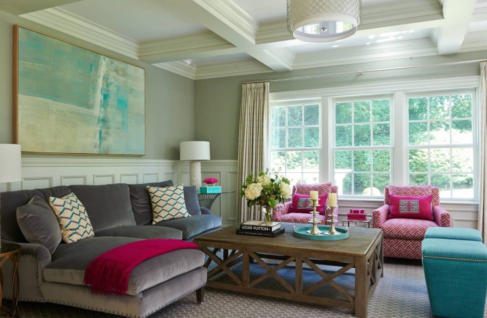 Если гостиная предназначается для бурных тусовок и активного времяпровождения, то имеет смысл оформить ее в ярких, насыщенных оттенках.