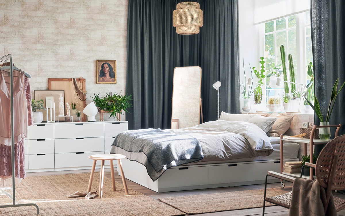Кровать лучше всего расположить максимально далеко от двери и поближе к окну.