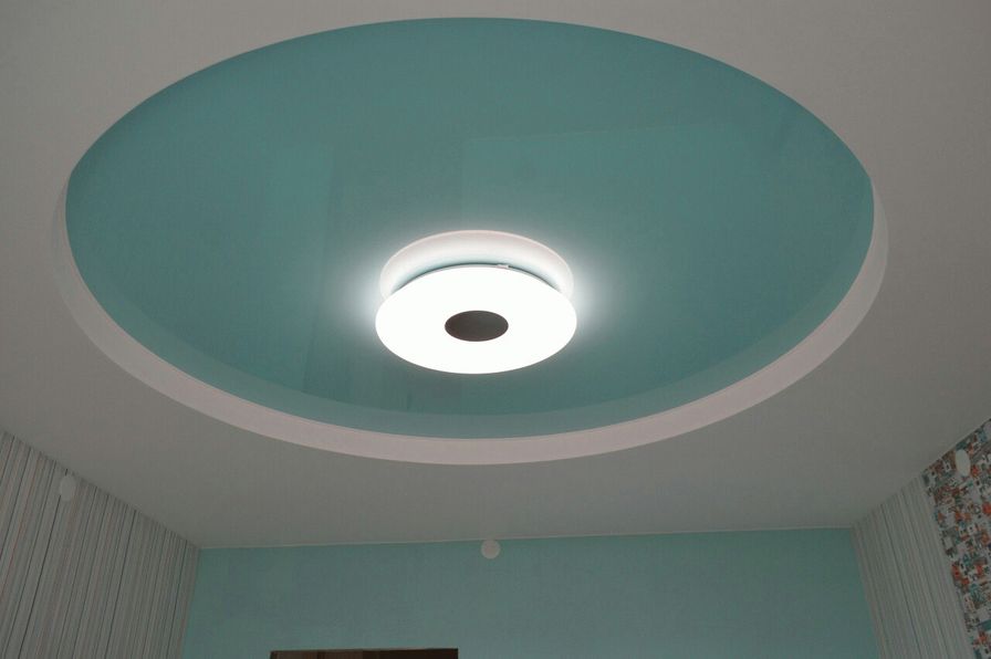 Глянцевая поверхность с разнообразными рисунками, звездами, узорами, фотопринтом, фотографиями 3D создается только при использовании пленочных натяжных полотен. Комбинированный двухуровневый потолок из гипсокартона и пленочного натяжного полотна особенно выигрышно выглядит в интерьерах детской, гостиной, спальни, прихожей, кухни, ванной большой квартиры с высокими потолками. Достичь яркого эффекта можно при сочетании текстильного полотна с пленочным.