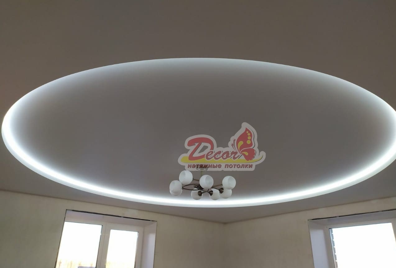 Овал, эллипс или форма полукругом, приподнимет потолок, сгладит углы в комнате и позволит создать в ней необычное освещение.