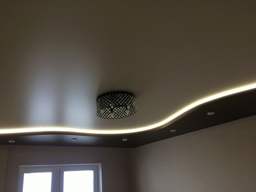 Двухуровневые потолки можно оснащать разными осветительными приборами. Рассмотрим их подробнее.