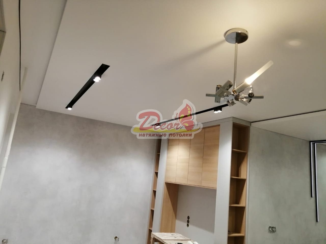 - Монтаж натяжного потолка происходит очень быстро – как правило, все работы занимают не более 1-2 дней; работа чистая и не очень шумная.