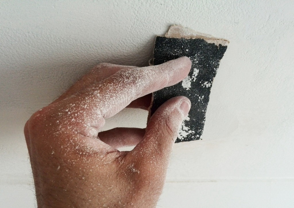 Шаг 4. Отшлифуйте штукатурку наждачкой. Для этой цели можно брать некрупную.