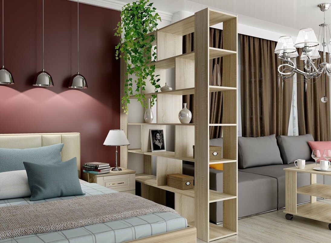 Иногда шкафы используются для зонального разделения комнат в квартире. В гостиной высокое изделие, располагающееся поперек комнаты, может смотреться весьма органично при правильно подобранном цвете и материале. Гостиную делят на зоны отдыха и работы, зоны для приема гостей и зоны для уединения