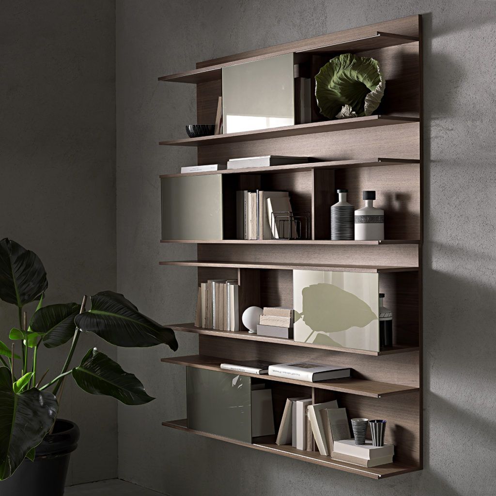 Считается достаточно выгодным решением. Такие полки не создают в помещении беспорядка и тем самым позволяют сохранить эстетичный вид комнаты. Конструкции закрытого типа могут иметь стеклянные прозрачные и рифленые фасады или быть оборудованными при помощи раздвижных, распашных или подъемных дверей.