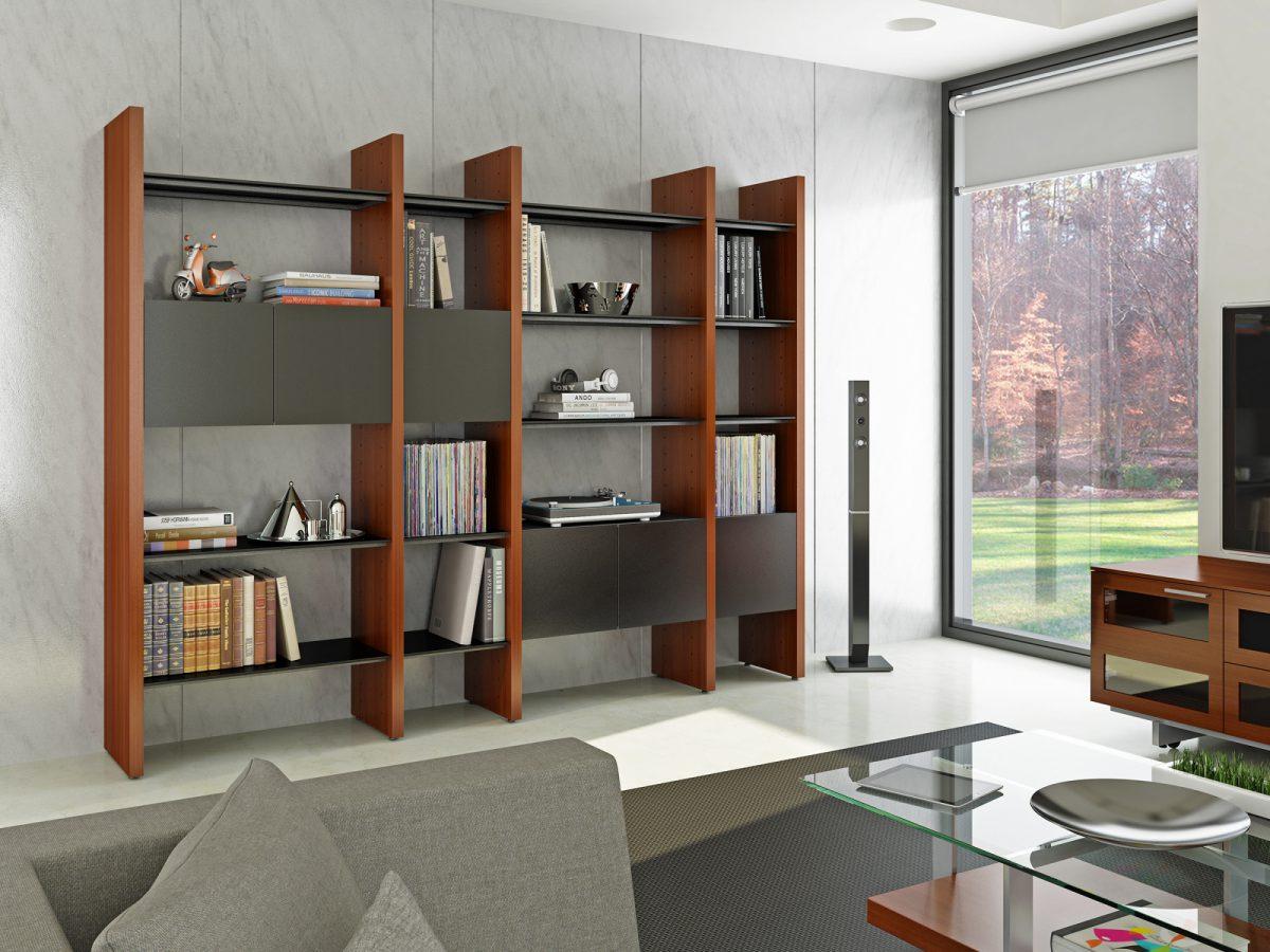 Для изготовления систем хранения книг используют самые различные виды материалов. Самые дорогостоящие или эксклюзивные модели создаются из натуральной древесины или шпонированного материала. Книжные шкафы для кабинетов и домашних библиотек, изготавливаемые из дуба, берёзы, светло-розового бука, красного дерева, ясеня, вишни или ореха, отличаются дорогим и эстетичным внешним видом, а также высокими эксплуатационными характеристиками. Изделиям из натуральной древесины можно придать практически любую форму и украсить их удивительной резьбой. Деревянные книжные шкафы – идеальный вариант для интерьеров в классических стилях.