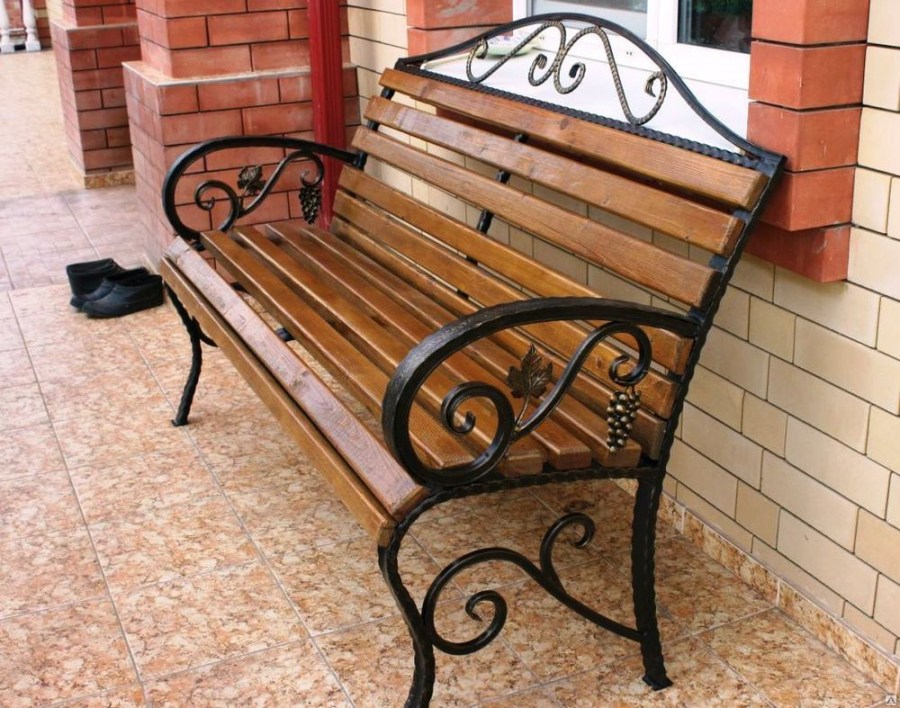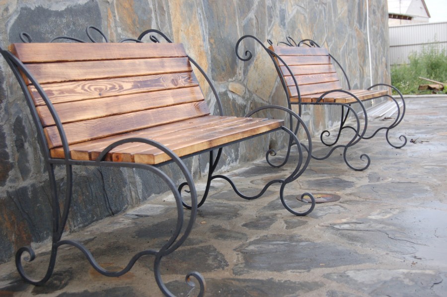 Любителям изысканности рекомендуется обратить свое внимание на деревянные скамейки с добавлением элементов ковки. В таких изделиях сочетается изящество и элегантность. Использование причудливых узоров и орнаментов позволяют сделать конструкцию, аналогов которой нет
