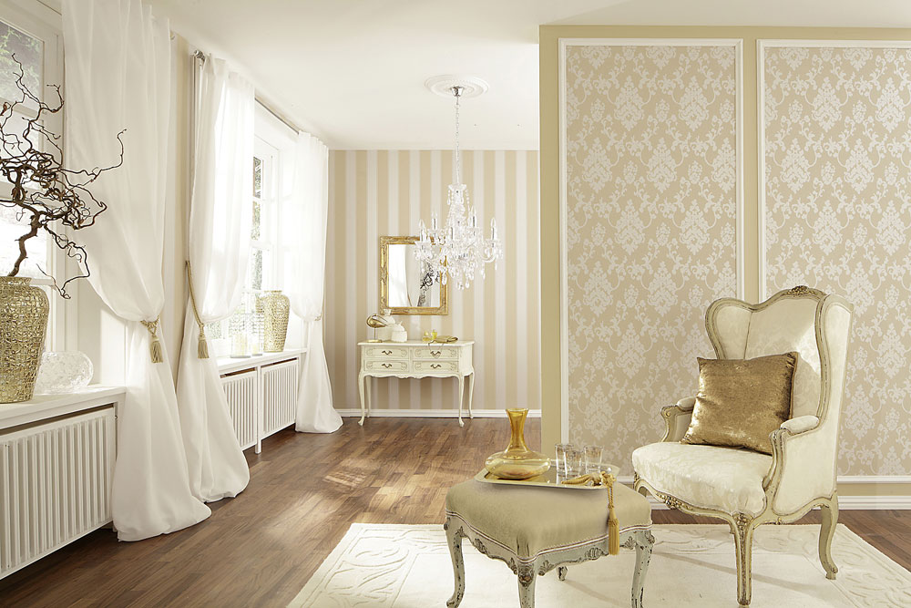 Таким образом, обои дамаск – это именно то, что нужно, для трансформации отдельно взятого дома в элегантный дворец. Благодаря им в дизайне помещения достигается особенный шик, граничащий с безудержной роскошью.