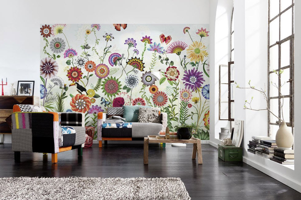 Яркие фотообои станут изюминкой интерьера и привлекут внимание к предметам, расположенным рядом с акцентной стеной