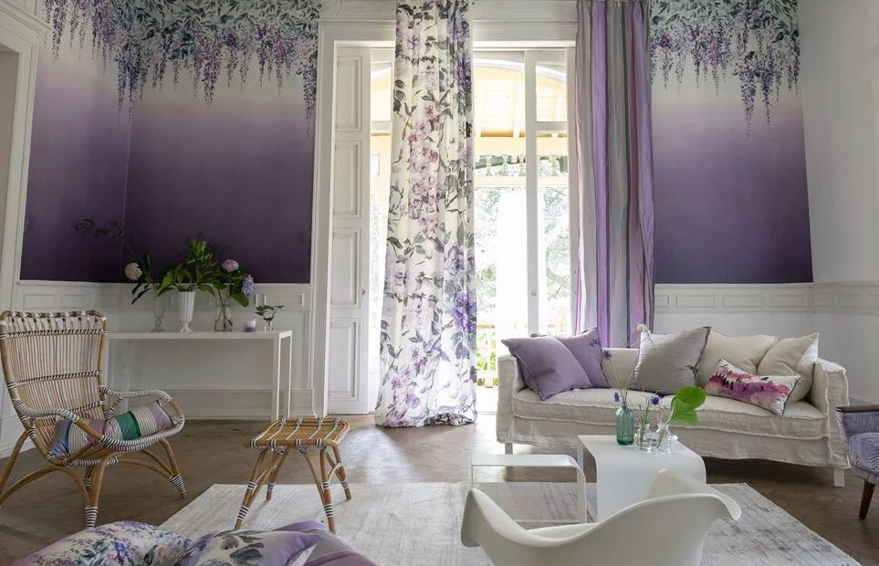Дизайнеры, создающие модные обои для известных брендов, предлагают оригинальные варианты с цветовыми переливами от пола к потолку.