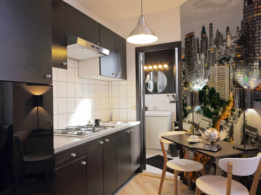 Для однокомнатных квартир решением может стать создание квартиры-студии – когда сносят все перегородки и объединяют комнату с кухней и прихожей. Последнюю чаще всего отделяют от гостиной мебелью или условным декором. Чтобы выделить кухню и отделить ее от жилой зоны, можно приподнять пол или использовать отличительное от комнаты напольное покрытие.