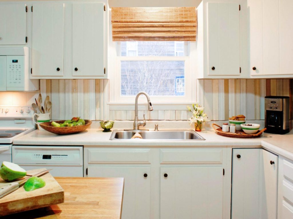 Обои над столешницей должны завершить обустройство всей кухни. Если кухня выполнена в деревенском стиле, например, предпочтительно выбирать вид полей, подсолнухов и т. Д. На кухне лучше всего выбрать самоклеящуюся настенную роспись в форме однородной горизонтальной полосы, приспособленной к расстоянию между столешницей и верхними шкафами.