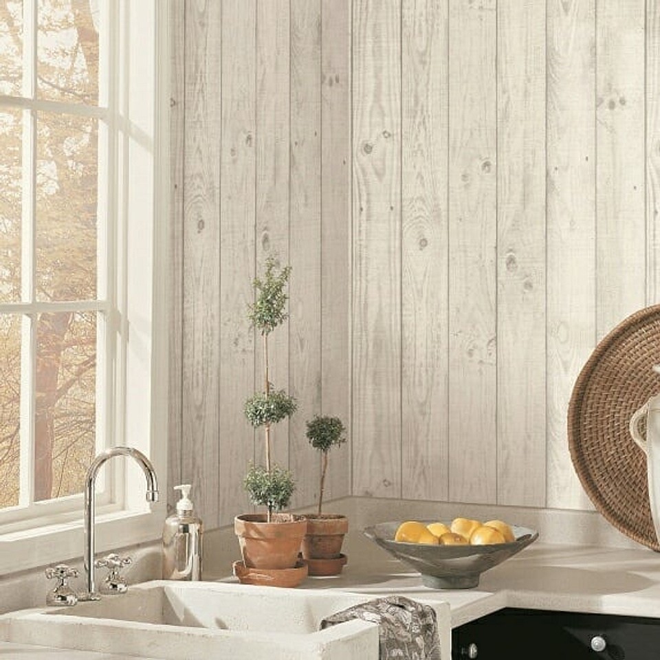 Линейный принт можно делать не четко геометрическим, а «спрятать» его в природных мотивах. Имитация досок запыленного бежевого цвета смотрится приятно и впишется в стиль кантри, сканди или прованс.