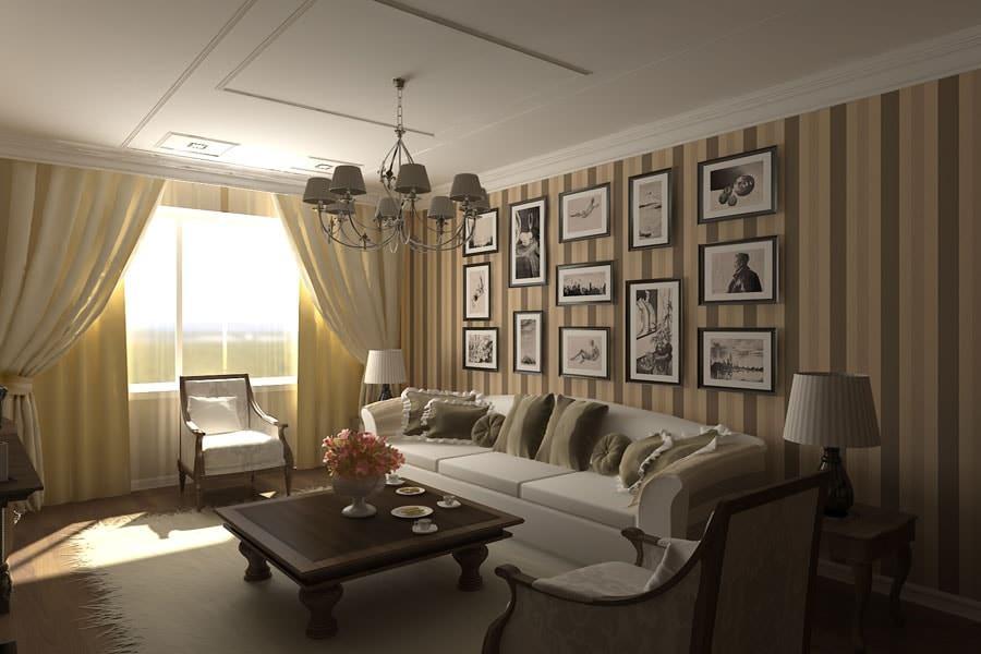Такой рисунок визуально увеличивает высоту потолков, а помещение воспринимается как более просторное.