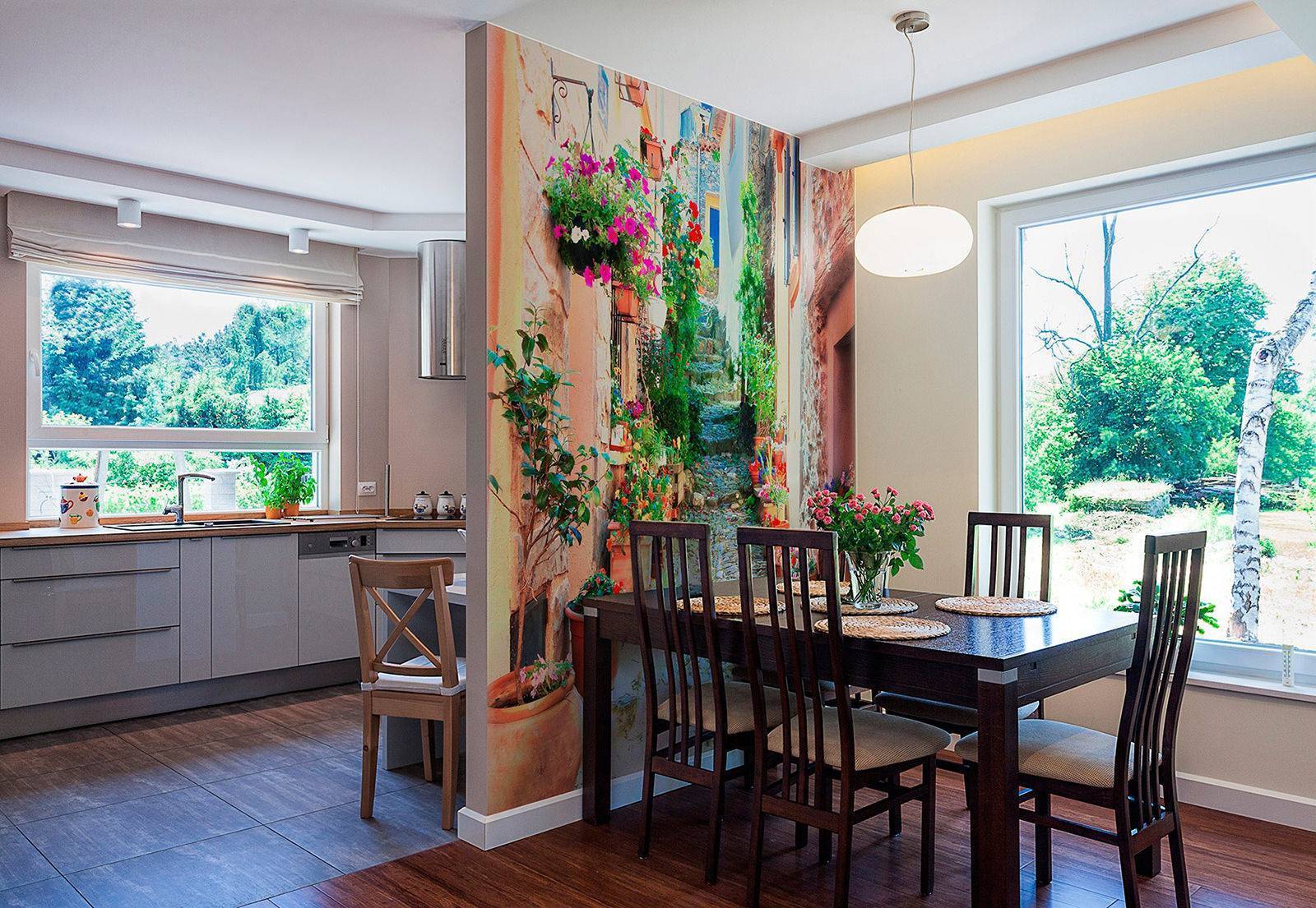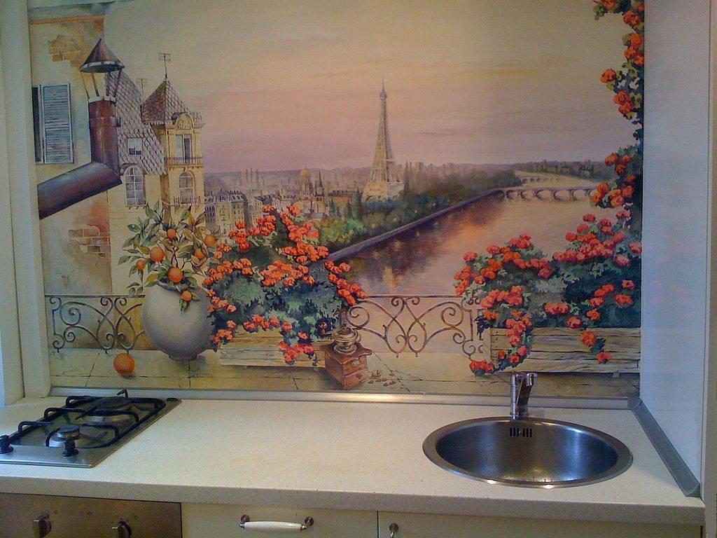 - для кухни можно подобрать романтичные рисунки: французский дворик, окно с видом на Венецию, летняя веранда, сельские пейзажи и многие другие изображения;