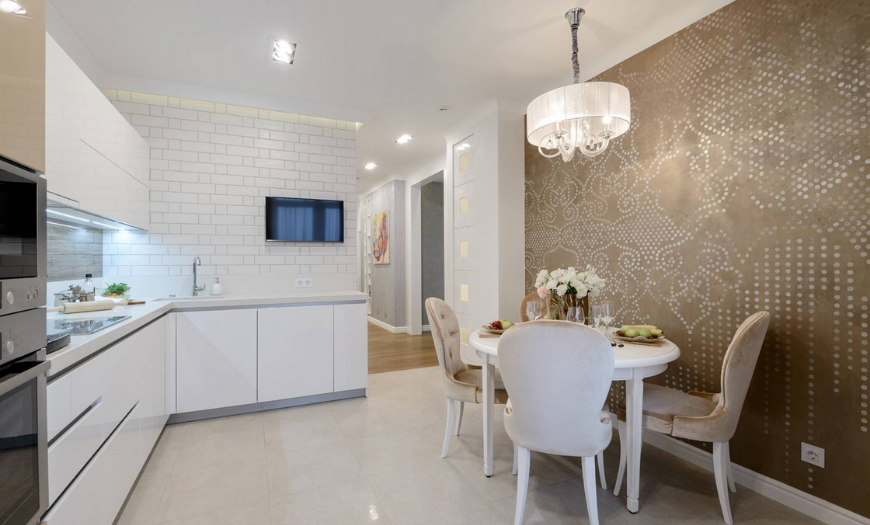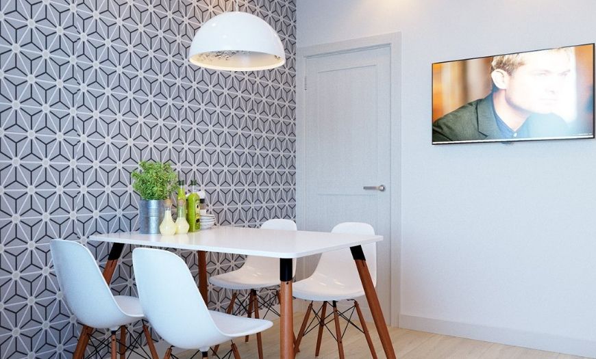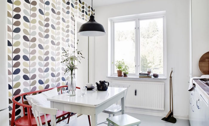 Что касается мест размещения в интерьере кухни — супермоющиеся огнестойкие подходят даже для фартука, но не являются самым лучшим вариантом для этой зоны. Если вы все же хотите оставить обои между шкафами кухонного гарнитура — защитите их прозрачными скиналями.