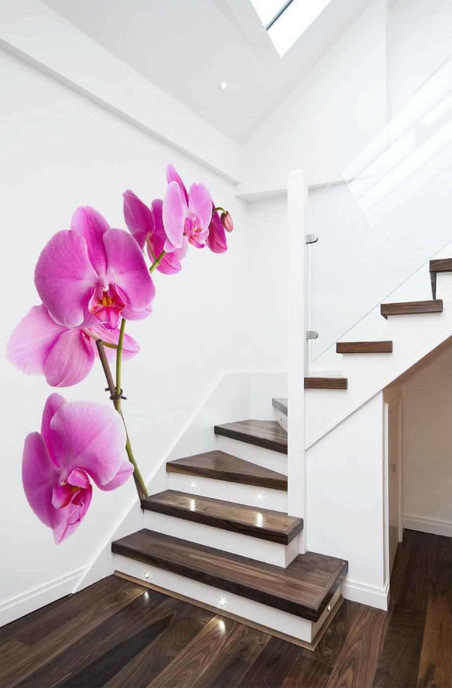 Орхидеи 3д обои на стену являются потрясающе реалистичными и по-настоящему захватывающими изображениями. Визуально кажется, что поверхность стены не плоская, а будто бы пространство уходит далеко вглубь.