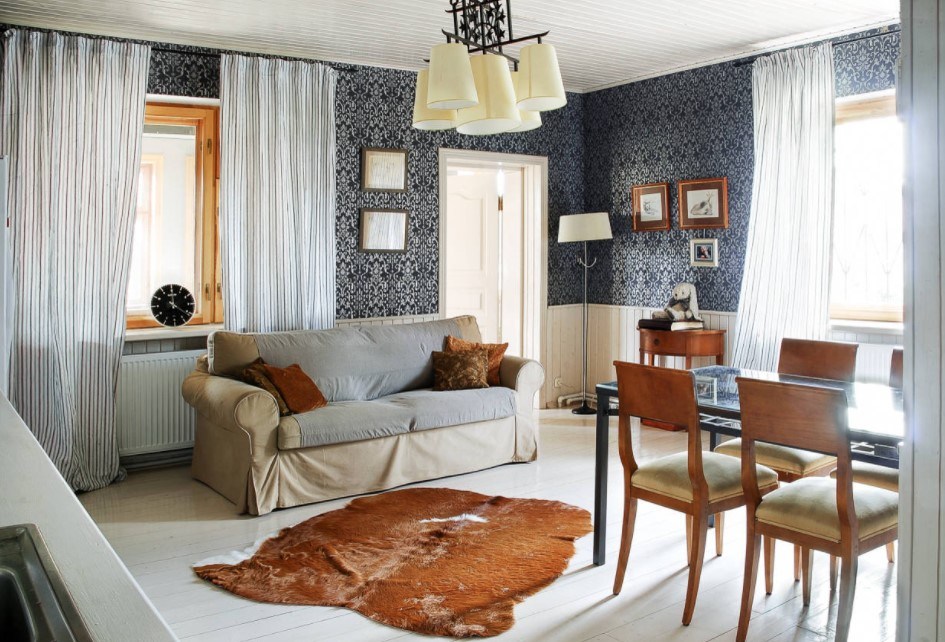 Представляя, какие обои украсят стены вашей гостиной, стоит сразу же задуматься о том, какие шторы выбрать, а также какой мебелью обставить зал. Очевидно, что оттенки разных элементов должны быть гармоничными, как и узоры, и форматы. Удачно подобранные изделия создадут уютную, комфортную обстановку, завершенную и самодостаточную.