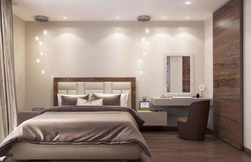 Благодаря способности к созданию базы для других цветов и за универсальность в спальнях большой популярностью бежевые стены. Их можно комбинировать со всеми оттенками фиолетового, бирюзового, голубого, коричневого и серого.