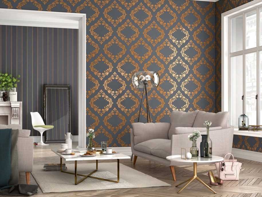 - Обои дамаск. Роскошное решение, которое станет элегантным, но в тоже время ненавязчивым акцентом в интерьере спальни.