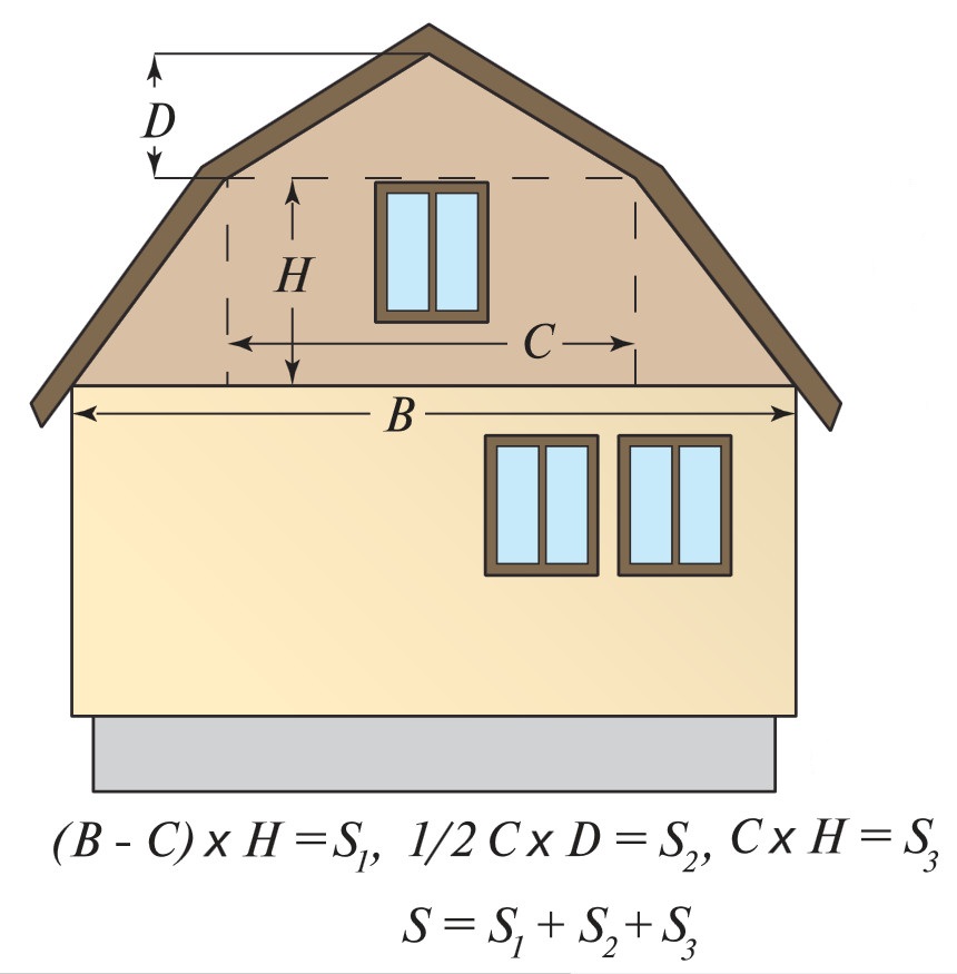 Правильная планировка бюджета не может обойтись без подсчета цифр. Еще до поездки в строительный магазин за сайдингом необходимо знать, какое количество материала понадобиться для завершения проекта. Было бы очень просто, если фронтоны были квадратной или прямоугольной формы, тогда определение их площади было бы простой задачей. Сложным является процесс определения площади, если они треугольные, но еще сложнее становится, когда в силу конструкции кровли они являются трапециевидными. Но начать стоит с другого. Первым делом необходимо узнать, какую площадь покроет одна планка сайдинга. Для этого необходимо умножить ее длину на ширину. Одним из распространенных размеров планки сайдинга является 366 на 20,5 см. Производное от этих чисел равно 0,75 м2.