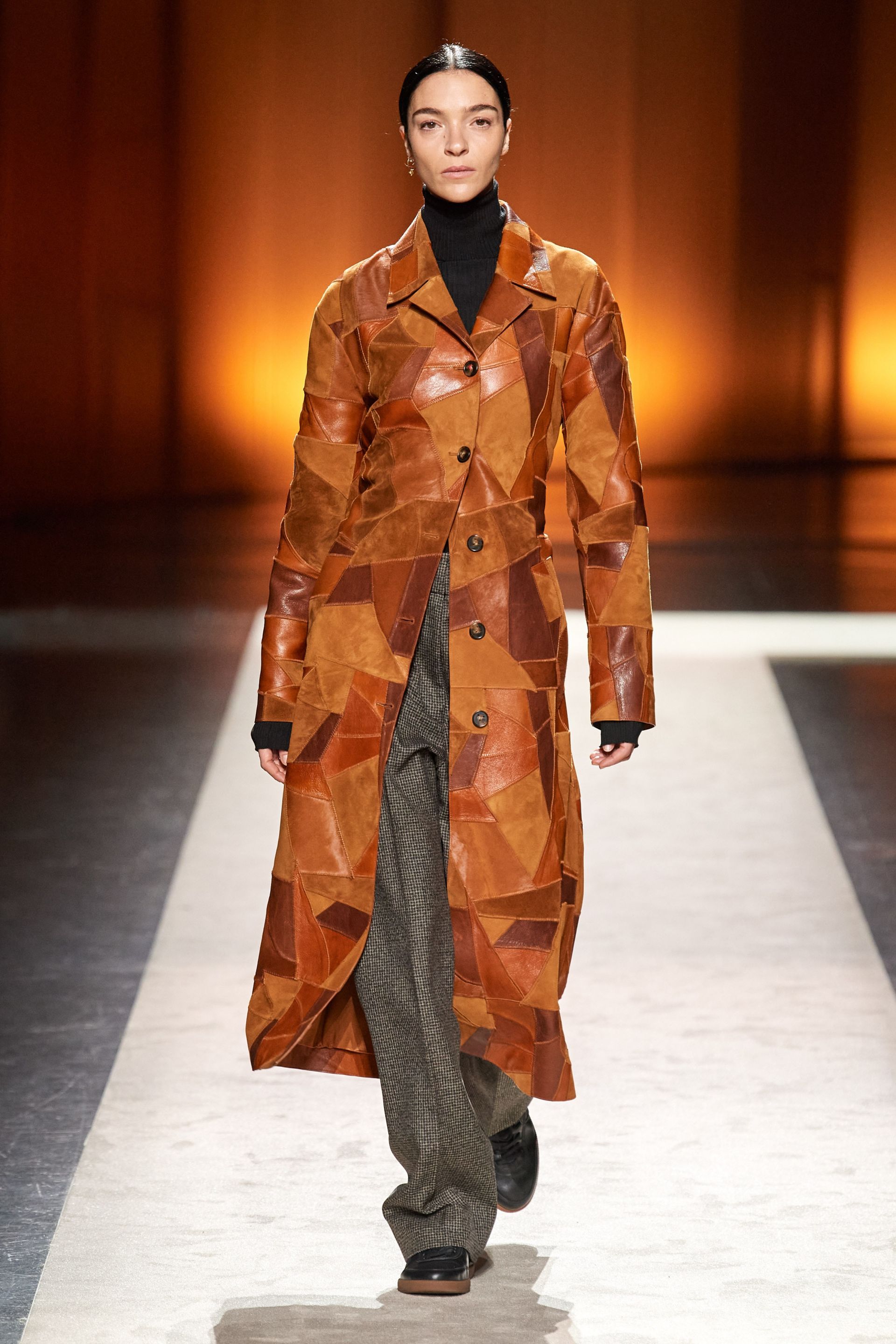 Конечно, этот тренд не обойдет стороной и верхнюю одежду: наибольшей популярностью будут пользоваться укороченные дубленки из экокожи в оттенках корицы и молочного шоколада и тренчи из матовой и глянцевой кожи, как у Tod’s и Alexander McQueen, которые вызывают ассоциации с картинами из музея современного искусства. Осенью 2020 носите их с ботинками в стиле милитари, высокими сапогами-слаучами или с челси на тракторной подошве, не обращая внимания на дожди и слякоть.