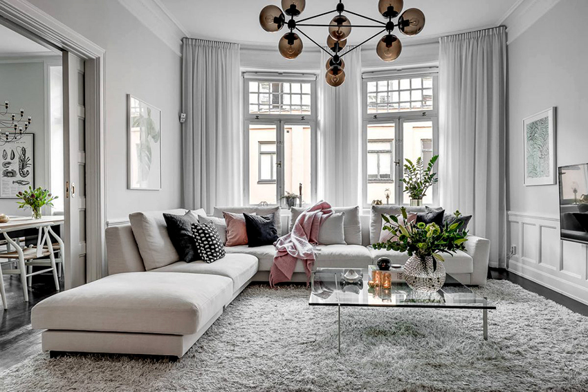 Занавески в зал: дизайнерские решения в скандинавском стиле