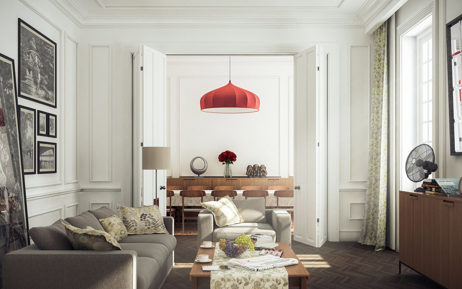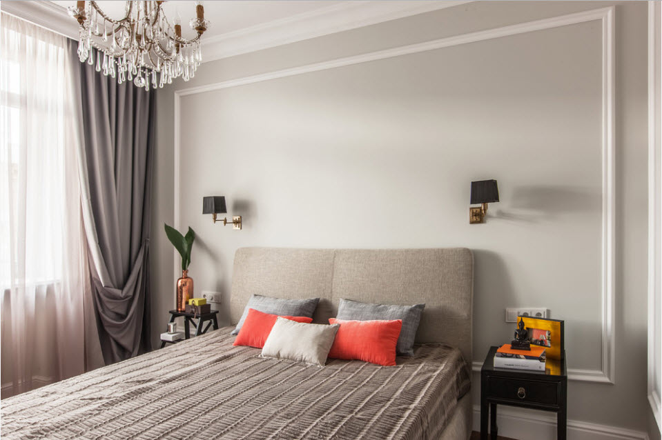 В просторном помещении такое решение декора может стать еще и способом зонирования комнат на функциональные зоны. Более того, молдиги часто используют с целью маскировки дефектов стен. Комната, декорированная штукатуркой, фактурными обоями и разбитая панелями на функциональные блоки, способна отвлечь взгляд от некоторых недостатков интерьера.
