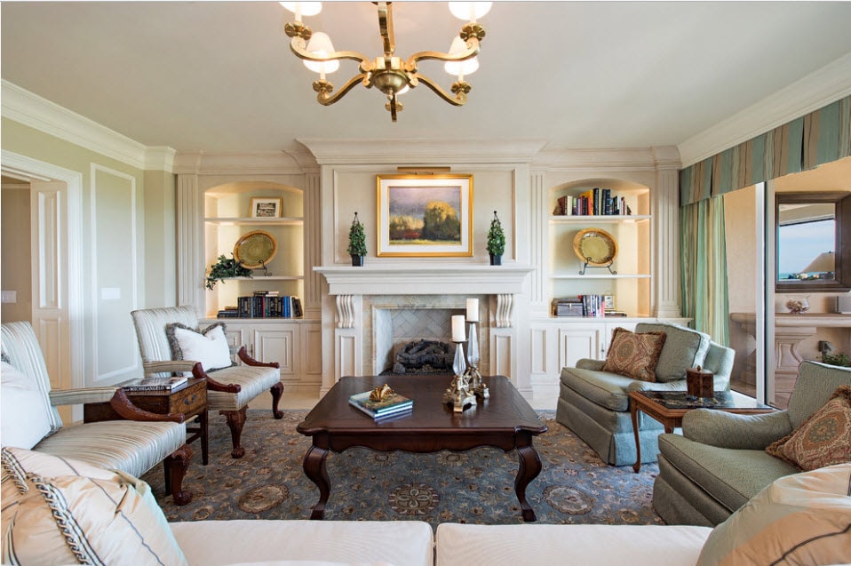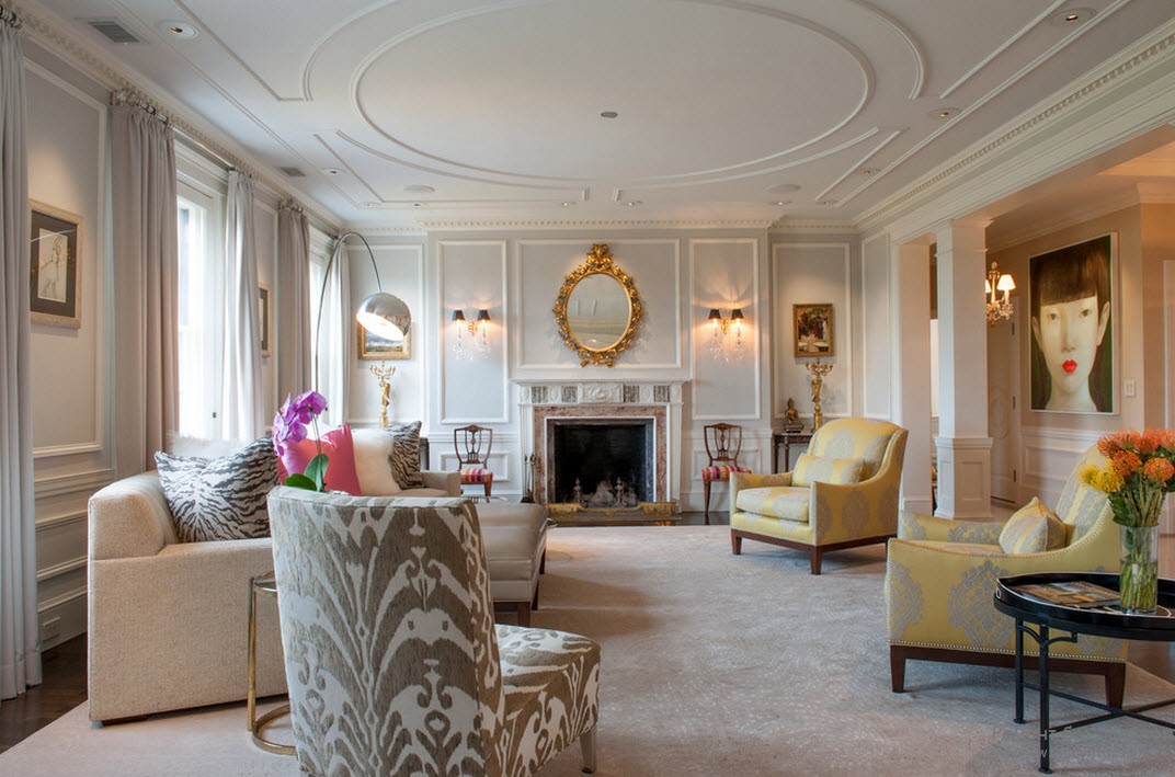Использование молдингов в интерьере выгодно еще и тем, что они обладают небольшим весом, устойчивы к влаге и не отваливаются в процессе эксплуатации, даже если были использованы самоклеящиеся элементы. Особой популярностью отличаются молдинги из таких материалов, как гипс, мрамор или дерево – обычно такие варианты используются для декорирования гостиной, оформленной в старинном стиле.