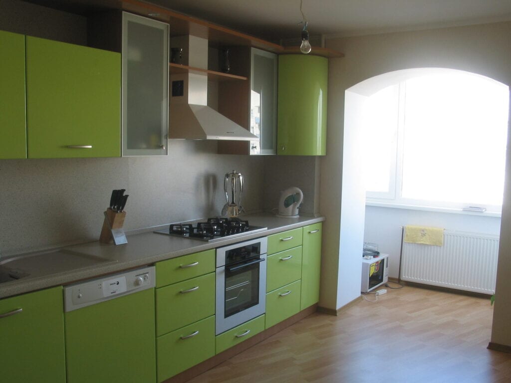 Дозирование использование оливковых оттенков сделает северную кухни яркой и лёгкой