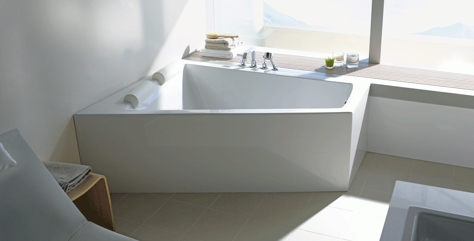 Виды форм ванн, которые подходят для монтажа в углу небольшой комнаты: