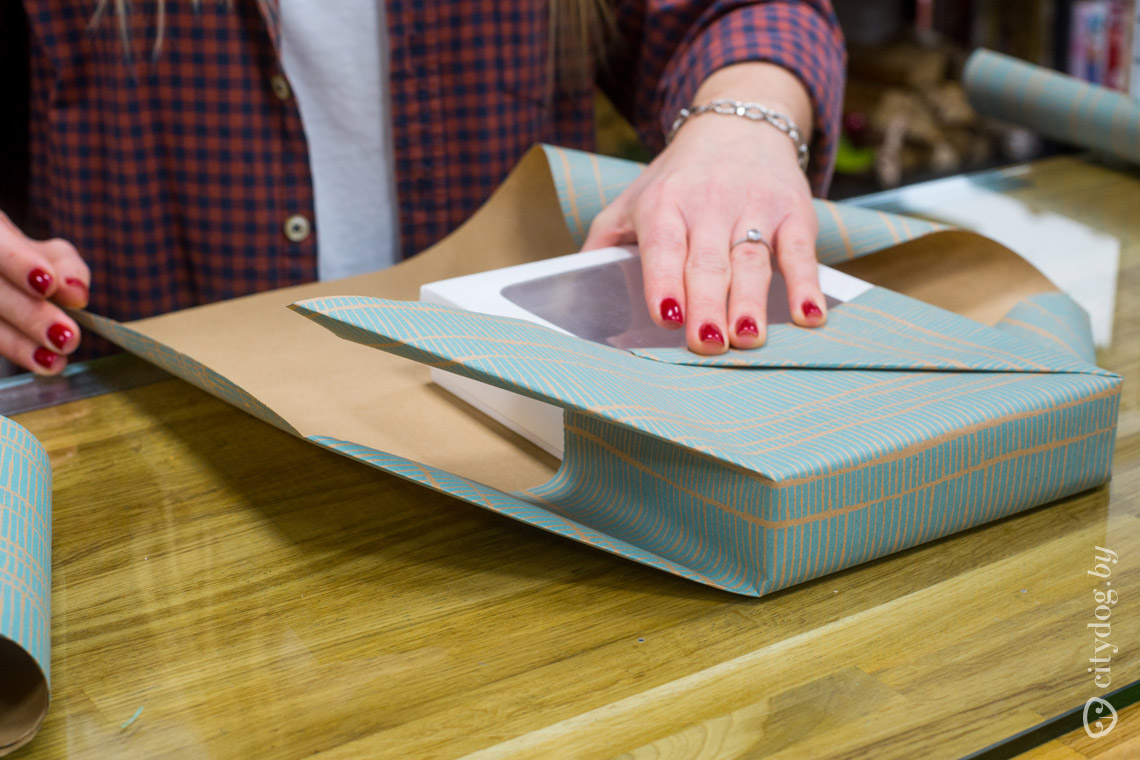 В магазинах сувениров продаются готовые упаковочные коробки. Если ваш подарок большегабаритный, загляните туда: вдруг угадаете по размеру?