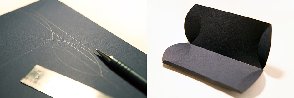 1. Прежде, чем сворачивать коробочку, сделайте биговку по линиям сгиба – продавите их непишущей ручкой или другим тонким, но не острым предметом. Без этого согнуть лист бумаги по кривой будет почти невозможно. (Вообще советуем продавливать все места будущих сгибов.) И еще совет – проще не распечатывать, а самому нарисовать схему коробочки. Да, чтобы провести линию клапанов, придется использовать подручный круглый предмет, зато потом его же можно будет использовать вместо линейки при биговке, ведь от руки аккуратно сделать это не получится.