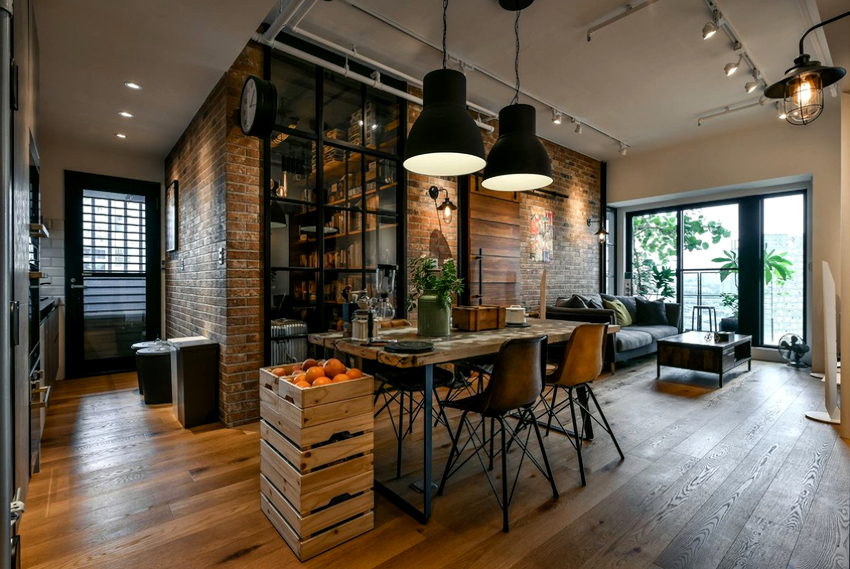 В небольших кухнях обеденная зона освещается обычной общим верхним источником света. Если речь идет большой кухне или кухне-гостиной, выбор вариантов освещения намного шире и это будет скорее интерьерное решение, так как здесь требуется не яркий свет, как в рабочей зоне, а скорее мягкий, теплый, уютный.